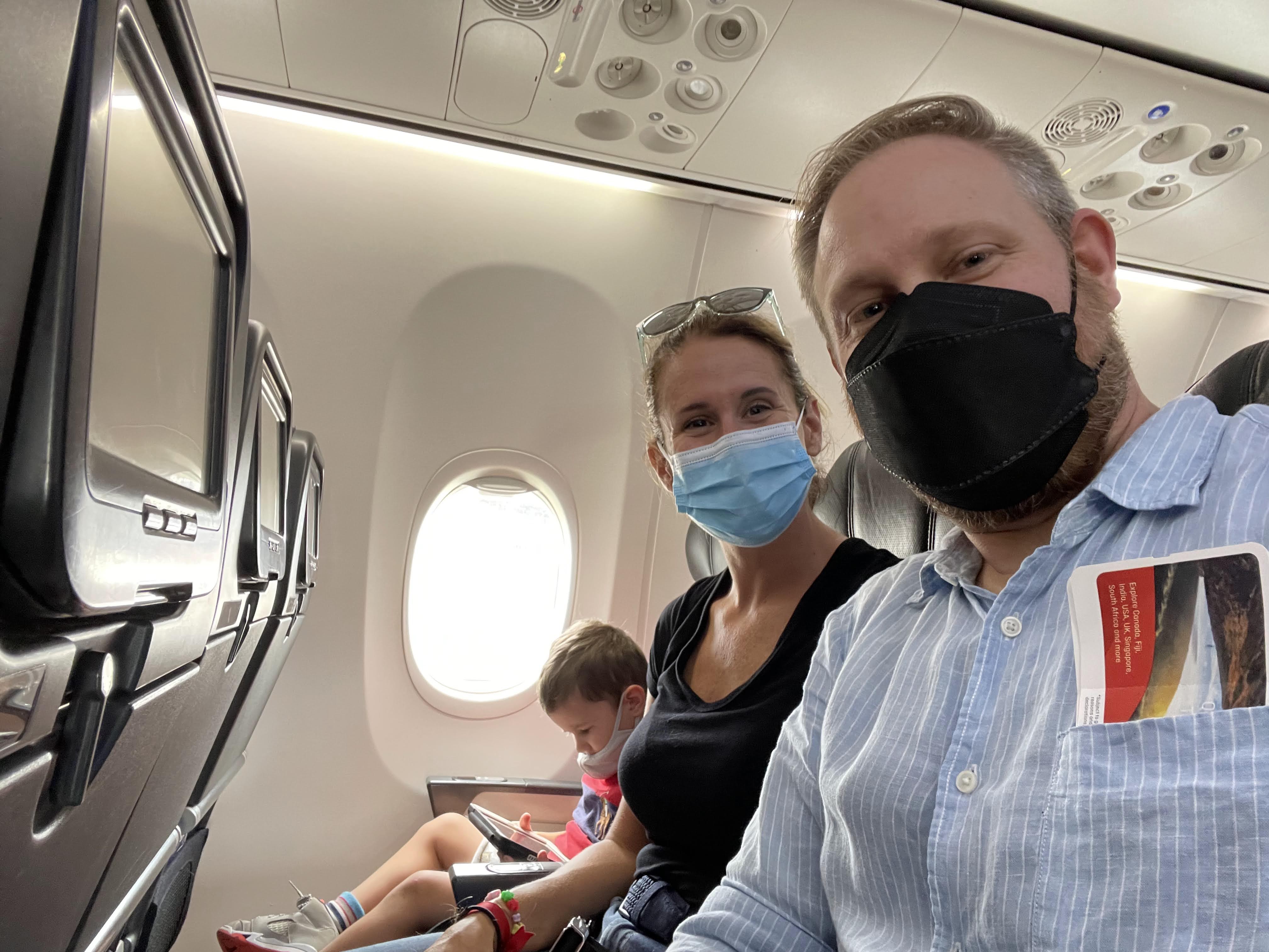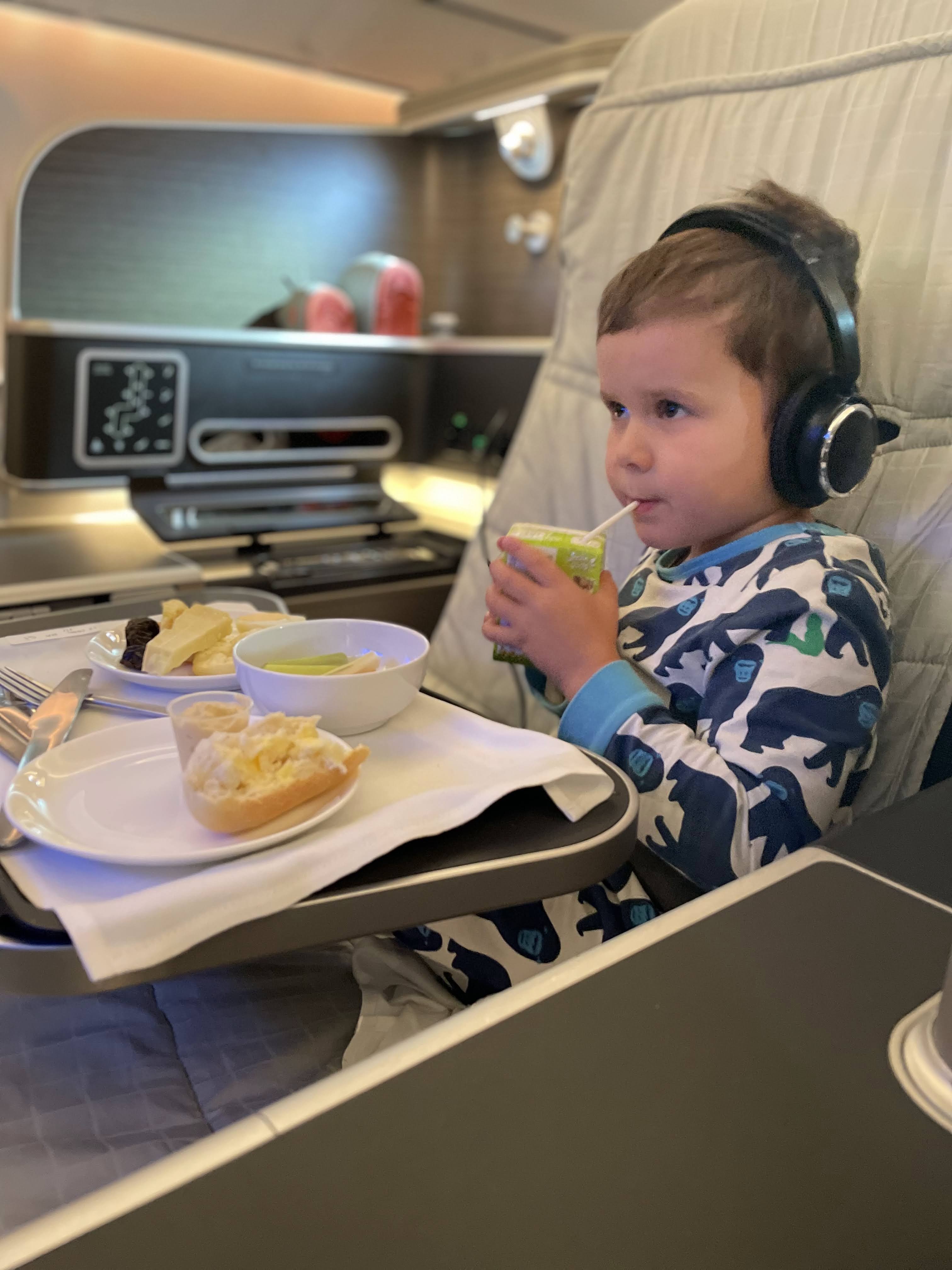 Leg 1 – MEL-SYD. This was a pretty mild 1.5hr introduction for what was to come. The Qantas staff on the international transfer check-in counter in Melbourne were great. All of the necessary COVID paperwork was submitted and approved online prior to our departure, they just needed to see our doctor’s certificates stating we had recovered from COIVD-19 within the last 90 days and our vaccination certificates. We then farewelled our bags and headed to the security scanners and then on to Qantas lounge to refuel Alfie. Watering and feeding toddlers is a key success metric – we also packed plenty of snacks.