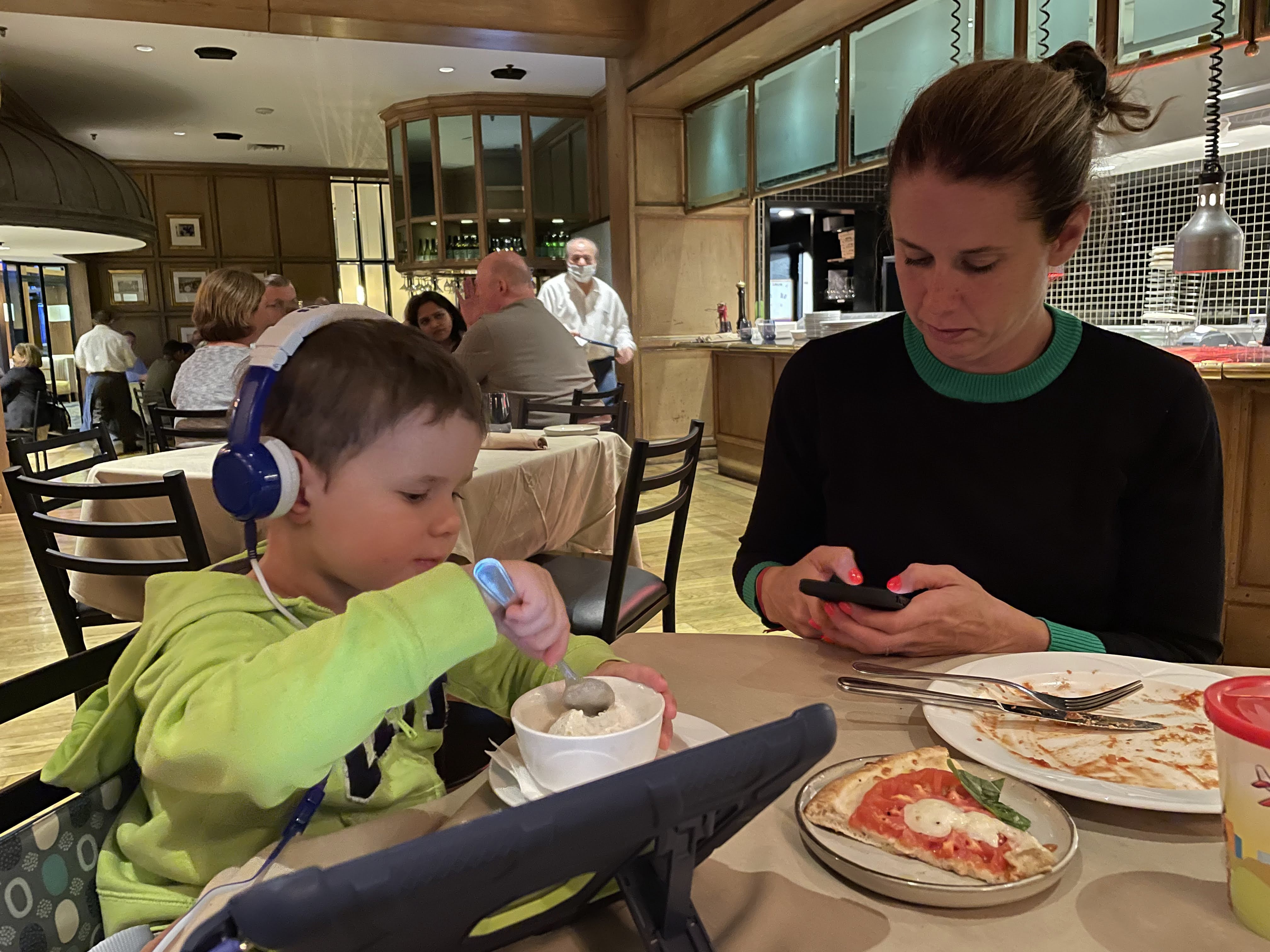 Tired, but now showered and feeling slightly more human we head downstairs to find dinner. The hotel has 4 restaurants – 2 are open, 1 is a bar full of semi-drunk middle aged American Airlines employees discussing sales strategies and other BS. We put our names down at the Italian restaurant and wait 15mins to be seated. Pleasantly the food and service was excellent. Alfie gets his first Ice-cream hit in 36hrs…he’s happy albeit now cold. Off to bed for all of us – it’s 9pm and we’re destroyed but glad we stopped as we would not have survived another 11hr flight (+4hr layover in Dallas FW airport).