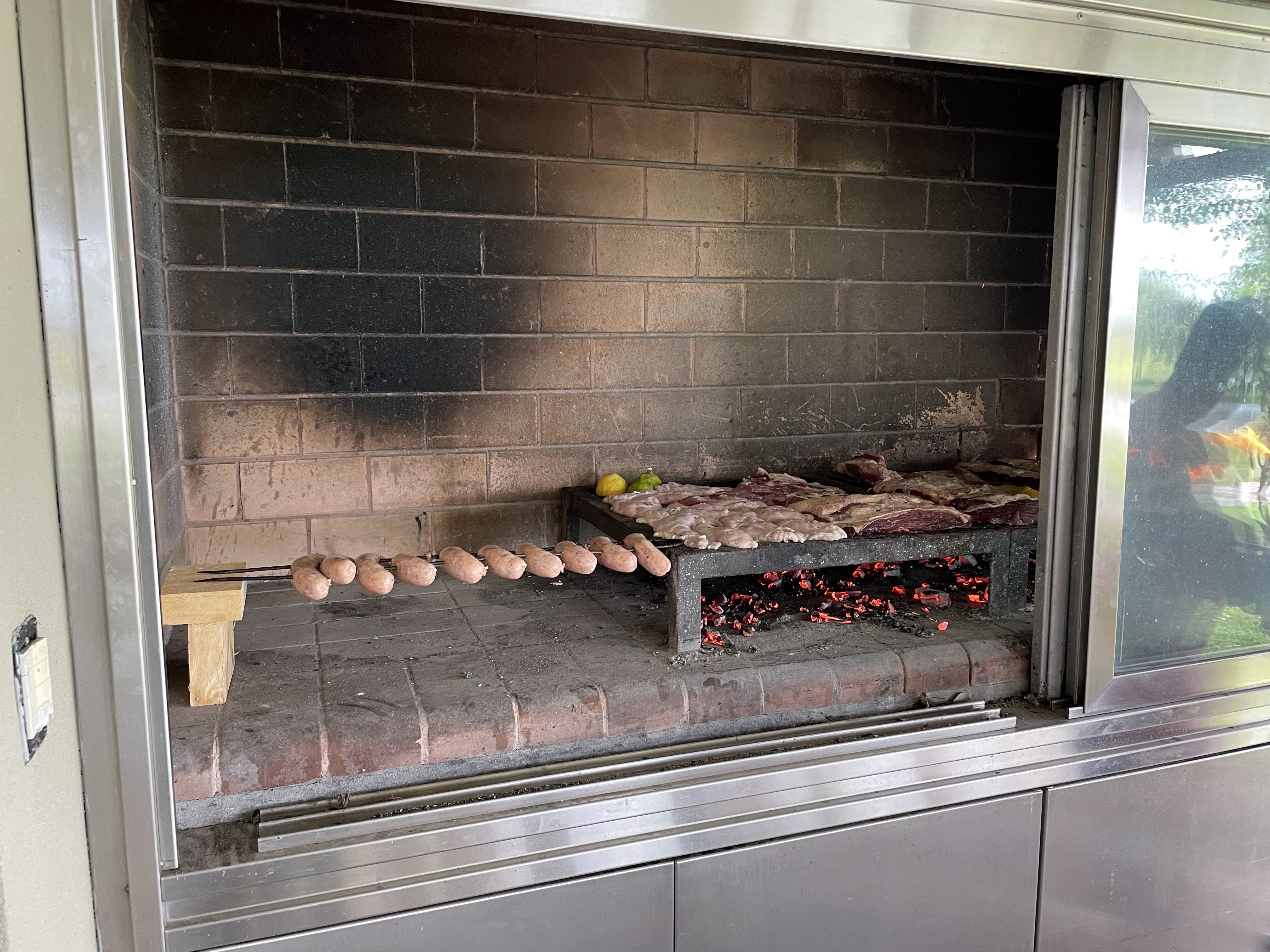 More of our friends join the party. Fer, Pauli y 3 hijos Cata, Fran and Trini llegar. Awesome more kids for Alfie to play with, more free time for mummy and daddy. It’s Asado day – get ready for it meat lovers (sorry Silvi). Luis has been hired to cater lunch for us, he has a parrilla restaurant in Monte. I’m told he caters for up to 500 people (no easy task), we’re a mere 20 so he should have this locked but we do have a vegan and a celiac so that may test him. Apparently he also has some grilling techniques that I’ve not seen, so I’ll be paying attention. Lunch is served, my new companion Candy is growling at me – her way of asking for some carne. Empanadas, chorizo, then mollejas, vacio (grilled then wrapped in foil – the special technique), then the king – asado ribs! These ribs may have been the best so far that I have had in Argentina. With wine and soda (syphon soda bottles are another love of Argentines) flowing freely I was well and truely happy, stuffed full, but very happy. There was plenty of salads as well – I’m always asked if Argentines have vegetables (they do) as I seem to only talk about meat. Oh and I may have given Candy a few small bits of meat under the table.