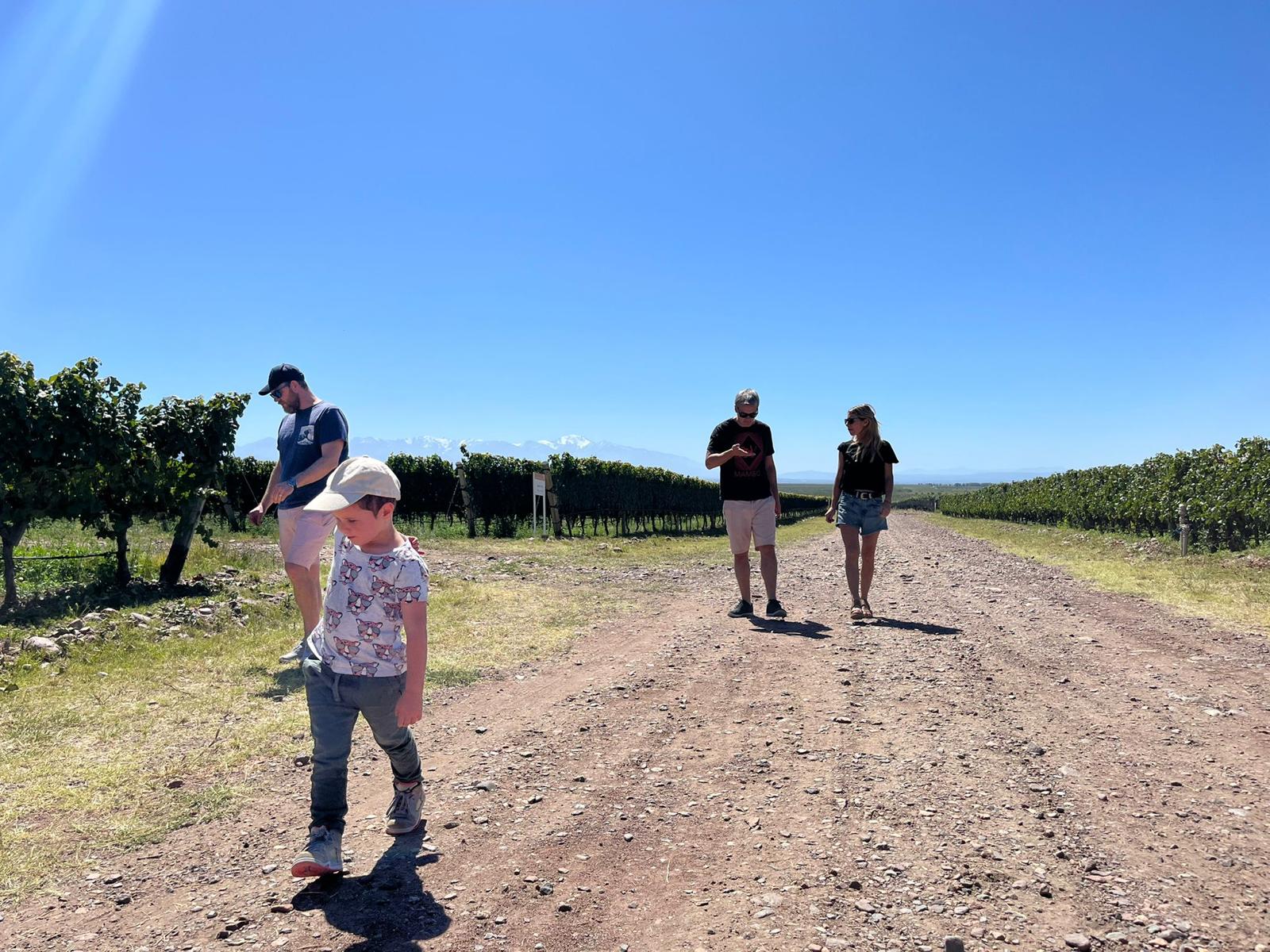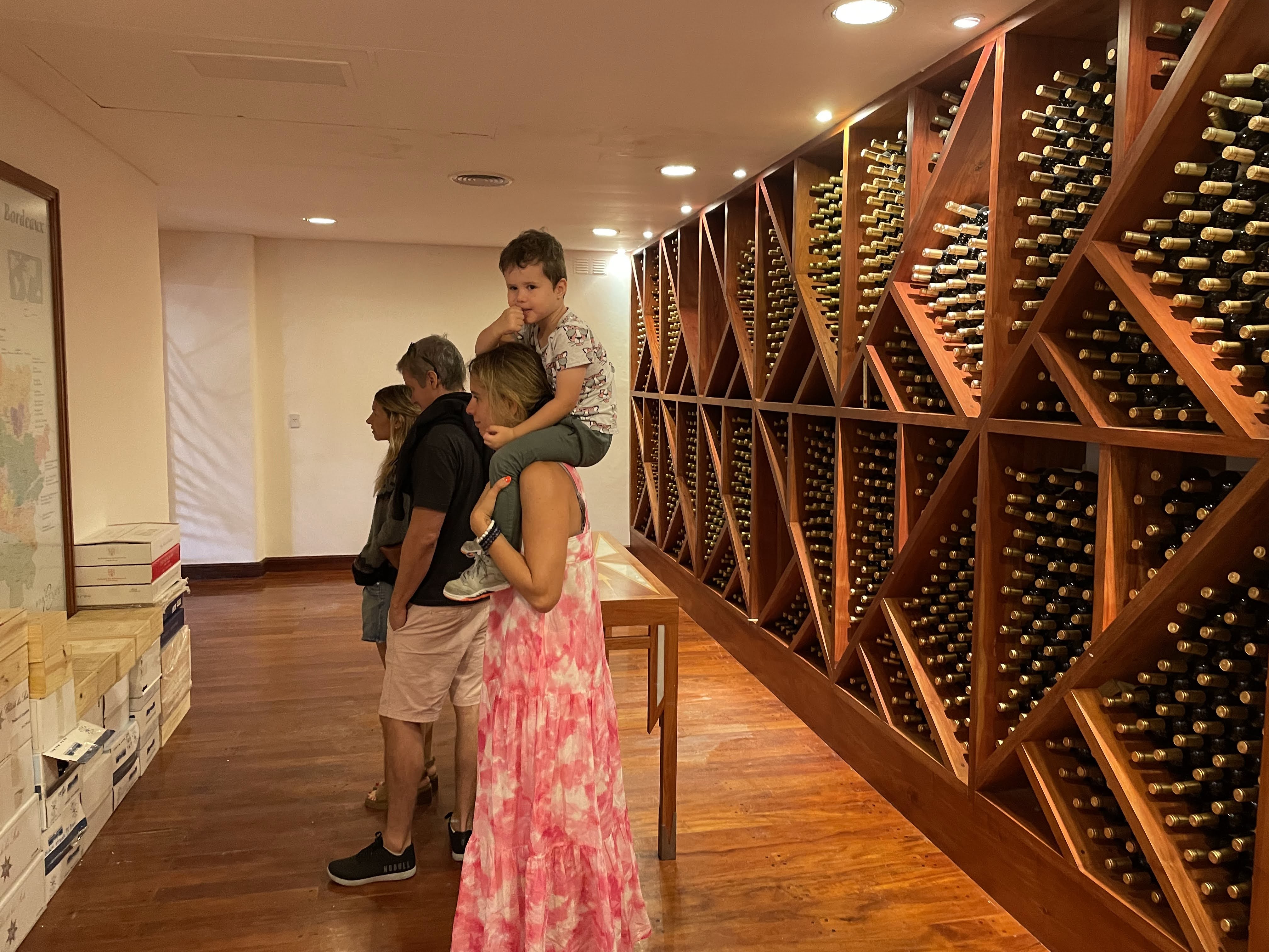 We are taken into the degustation room and told the history of the Rothschild family and about their wineries in France, Spain, New Zealand, South Africa and here (obviously). The architect built this complex with details of the family crest everywhere – the 5 arrows representing the 5 brothers of the family. I’m getting bored trying to translate this all from spanish to english in my brain, Agus sees this and translates on the fly for me…I just want to get to the wine. Finally we take a trip downstairs to check ou their cellar and production facilities. Alfie doesn’t want any part of this so Agus escorts him outside into the rock garden. Santi, Caro and I take the manufacturing tour. This I can understand (even in Spanish) and I find it enjoyable, but I really just want to taste the wine, after-all it’s now past midday. Let’s get to it! Finally back up to the tasting room and Agus joins us, we give Alfie his iPad so we can enjoy some peace and quite (we need to cut back on screen time as soon as we return to BA). We taste 4 wines…the first is a Rose only made from Tannat grapes which is very different as most here are made with Malbec grapes. The next blend of Malbec, Cab. Sauv., Petit Verdot under their Punta label is meh pass, but the final 2 are really good. A new release for the winery this year is the Cabernet Franc and then their Reserve Malbec – boom they wake up my pallet! We take these bottles with us downstairs for lunch.