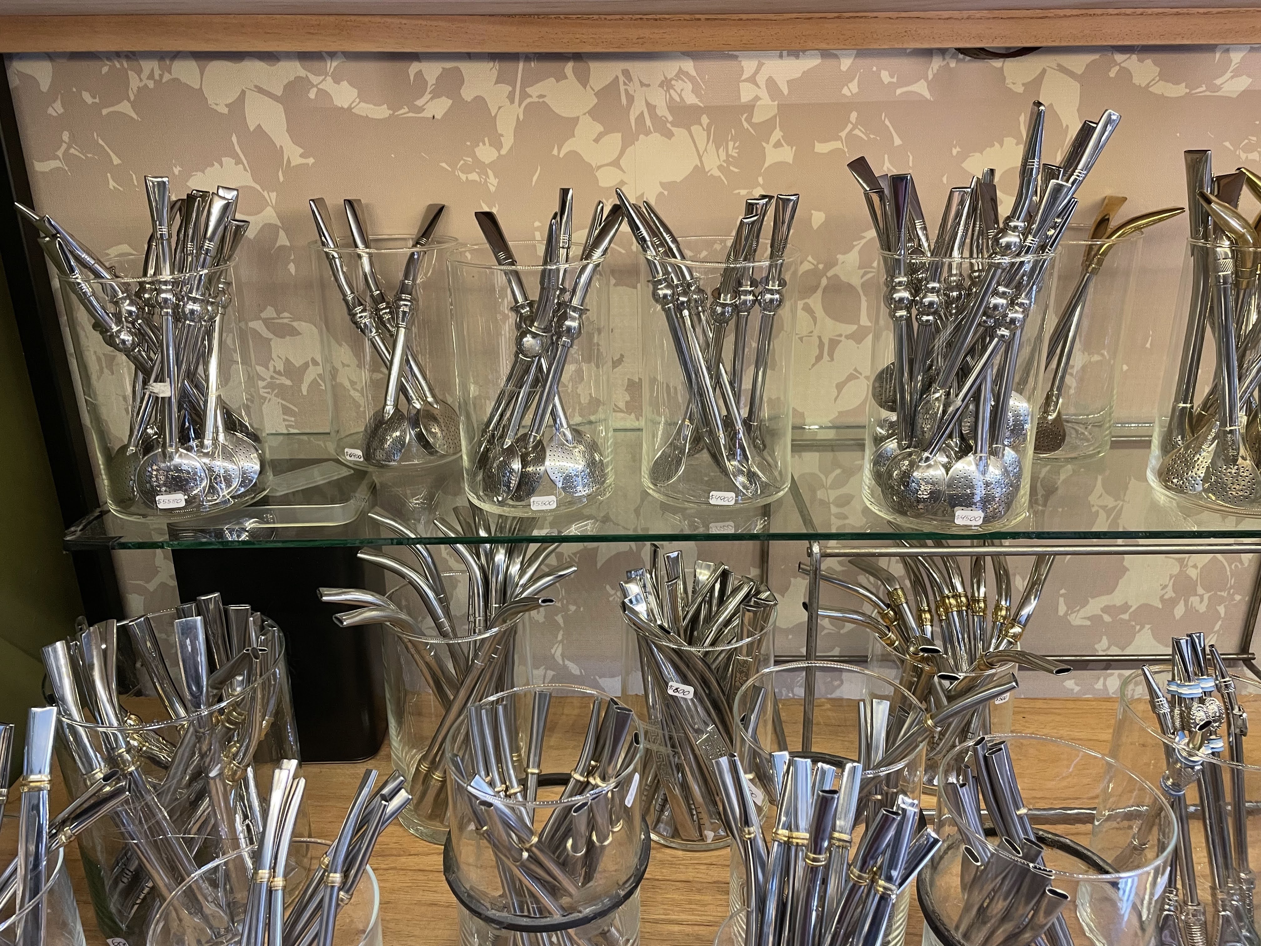 Why are metal straws used to drink mate? I can only guess at this one, but as the yerba stays in the porongo for the duration of the drinking session (the hot water is refilled numerous times) I suppose it was to ensure that you’re not drinking the bits of leaf and wood. The straws are called bombillas (pronounced bombishas in Castellano) and most have some kind of strainer or filter on the bottom of them for this purpose. Why they are metal, I can only guess that historically it was easier to make them from metal (silver traditionally) and it lasted a long time…plastics weren’t invented & wood similarly didn’t last very long or tainted the taste. What I do know is that there is definitely a technique required to drink hot water through a bombilla…first timers are probably going to get a burn or at minimum a rude shock at the back of thier throat.