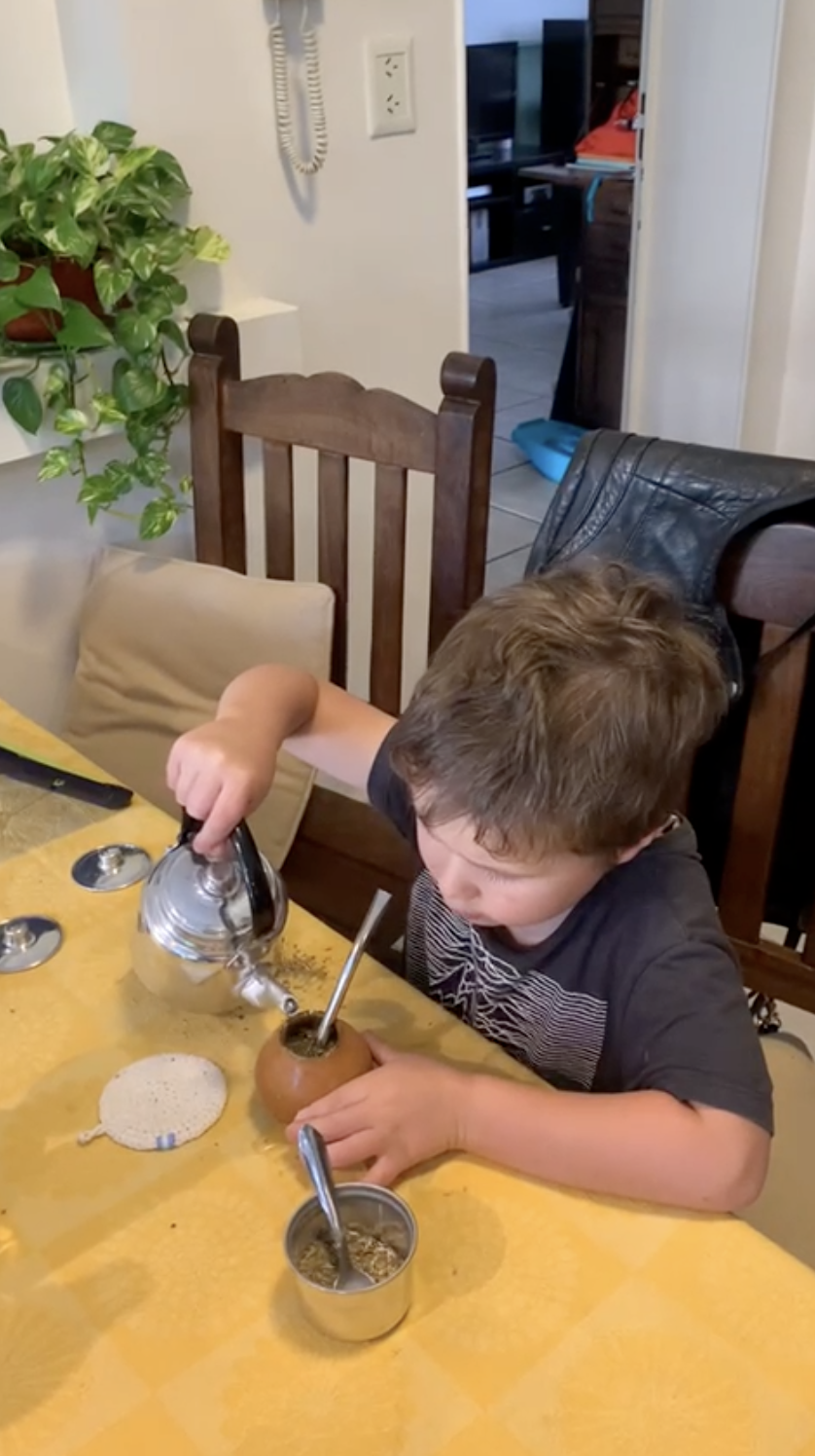 Do I like and drink mate? The answer to this is a most definite NO. I have tried it on many occasions but it is just one thing here that I can’t get used to. The yerba to me smells like horse chaff (the straw stuff they put in horse feed bags), and it is too bitter for me. Also, I just don’t care for the burns that can happen from the metal straw e.g. sucking on it too hard and having hot water hit you in the back of the throat. I’ve never had it in orange juice and I’m not rushing to try tereré. The only mate I like is in the Principe de los Apostoles gin! Alfie on the other hand has been drinking mate now for maybe a year or more. Agus started him on it in Australia and he now has acquired his own mini mate set here in Buenos Aires. He likes bitter and sour things like picked onions, gherkins & raw onion so I really shouldn’t have been surprised he liked the taste of mate.