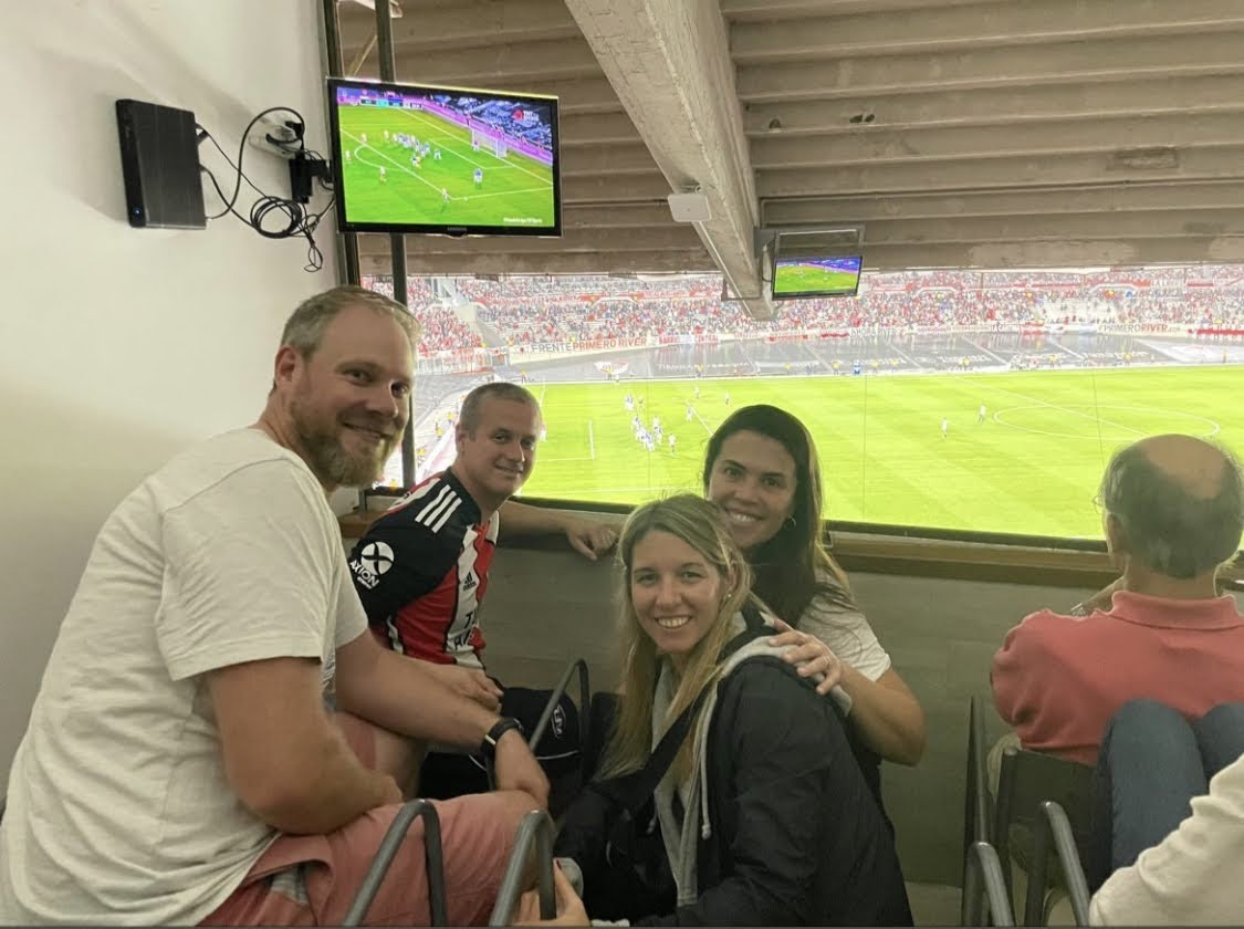 We are off with tio Santi and tia Caro to watch the River vs. Argentinos game at the Estadio Monumental (River’s home ground). This is a 9th round fixture in the Copa de la Liga Profesional (last season it was called the Copa Diego Armando Maradona as a tribute to him) and we have been invited into a palco (box) by one of Santi’s good friends as they have spare seats. This is a perfect situation for Alfie to see his first football match in Argentina as taking him into the stands would have been a tough task with his attention span, not to mention negotiating the seating etc. with the football crazed River fans. Being in a box and being able to drive and park directly at the stadium is also a much safer prospect for us foreigners. Agus and Silvi are walking to the stadium and sitting in Silvi’s usual seats in the terraces. Traffic on a Sunday night to get to the game is crazy, 10x crazier than on a normal day going into towards the city…Alfie lasts all of 5mins and then falls asleep. Probably a good thing as he has had a crazy day already and this way he will not be super crabby at the match. I’ve packed snacks and the iPad just in case.