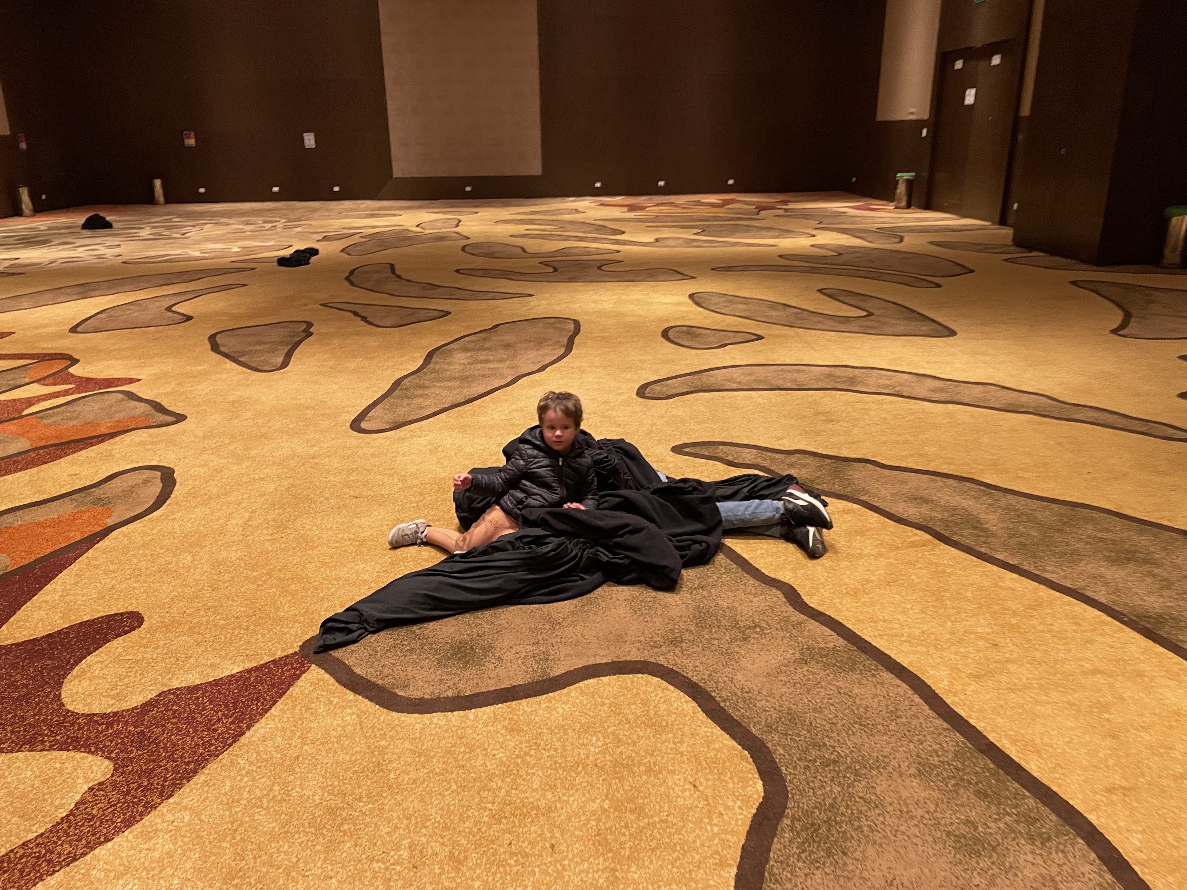 We have a late lunch at the “Old English Pub” in the Pilar golf club house and Alfie gets to run around with the other kids. I checked my tee time for Friday morning and went back later to hit some balls at their driving range. Franco has a football and was being super patient playing with Alfie- we were hoping to see some improvement in Alfie’s footballing skills by the end of the weekend (spoiler, this didn’t happen). After letting the kids run around and use table covers as ghost outfits downstairs in the conference room / makeshift movie room we end the night at the buffet restaurant inside the hotel lobby and I’ll admit some scepticism about this style of dining, however the food was actually very good, they even had asado…of course Agus ate fish even though fish Friday was to officially begin in 4hrs. They did have an excellent desert bar & in between playing peekaboo with Martu, I may have made multiple visits.