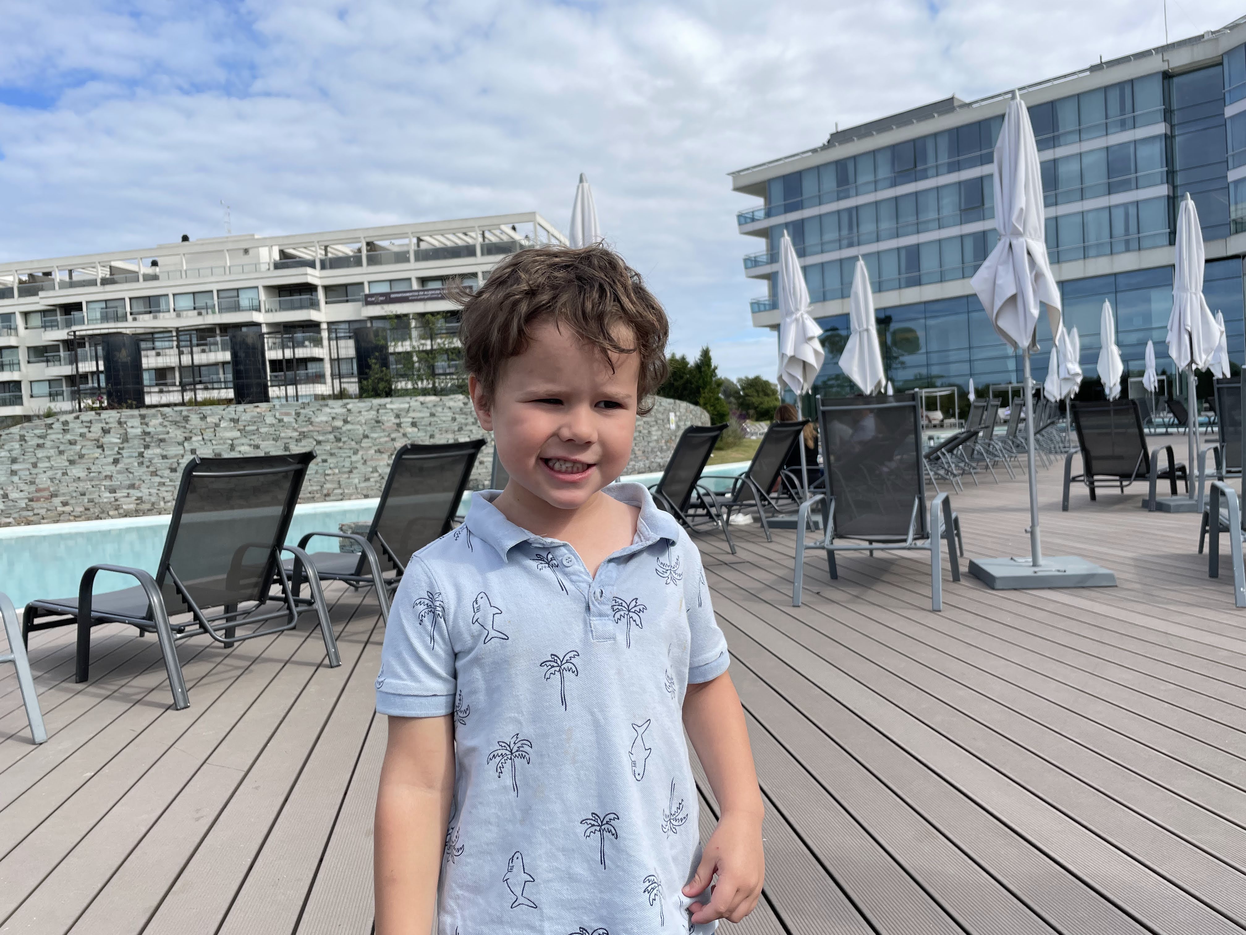 We have organised the weekend away with our friends Magi & Herman and three of their 4 kids Franco, Juliana (Jules) and Martina (Martu). Sofi their eldest is on vacation with her cousin in NY. They are nice enough to loan us one of their cars so that I can take my golf clubs as it would have otherwise been impossible to cram all 8 of us into 1 car with luggage. Traffic is pretty crazy in Argentina at the best of times and we are trying to beat get ahead of the weekend holiday traffic. This probably warrants a whole blog post but just so you get an idea, driving in Argentina is a completely different experience – people like to overtake on either side of you, indicators are optional and I really don’t know how merging works here as everyone just weaves in and out wherever they want to. The Autopista (motorway) is basically a cross between a race track and a world cup rally course, I don’t understand how there are not more accidents as other than intersections that have traffic lights I can’t figure out how they know who has right of way (or if in fact they care). Oh and cars don’t stop (in general) for pedestrian at pedestrian crossings. Agus is driving (as I basically refuse to drive in Argentina) and I’ll admit I am a bit nervous as she hasn’t driven a) in Argentina for over 5 years and b) on the right hand side of the road for just as long. I can’t figure out the audio system in the car so give up on connecting my iPhone and listening to Spotify and resort to listening to FM radio (Aspen 102.3) as I am now slightly car sick – the constant lane changing, accelerating and braking will do that. Fast forward 10mins down the motorway and Alfie has passed out which is probably a good thing as he actually needs a midday nap these days even though he fights it. We arrive at the Hilton and leave him sleeping in his car seat whilst we check in & take our bags to our room – hold your parental judgement, the car windows were down, we could see him in the car from reception and Magi, Franco and Jules were outside keeping an eye on him for us.
