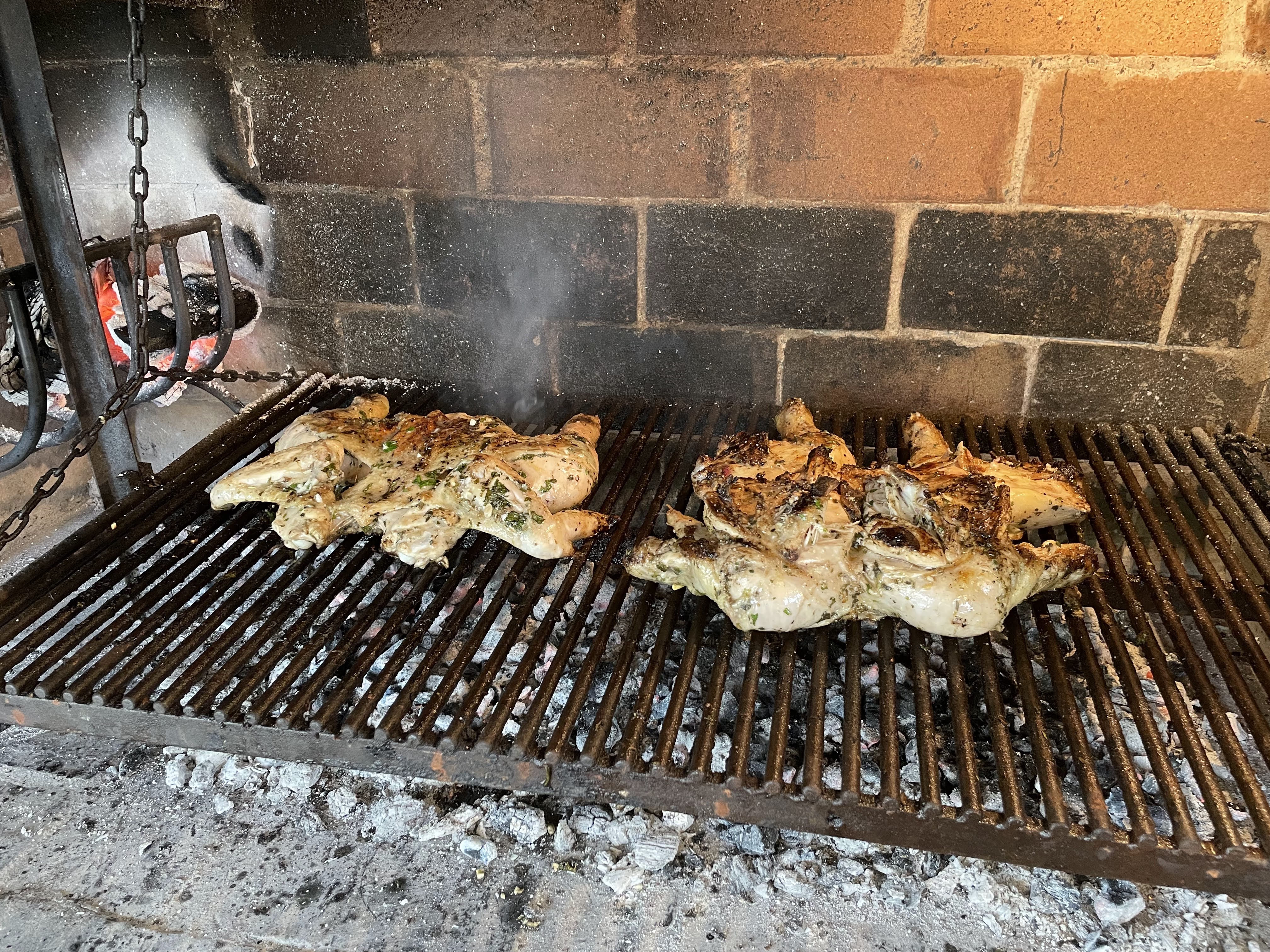 Now onto getting the chicken’s broken down and butterflied and into the marinade that Agus has mixed up. We let them marinate for about 20-30mins and then it’s onto the parrilla. Standing outside smelling the smoke reminds me of BBQ chicken shops back in Australia.