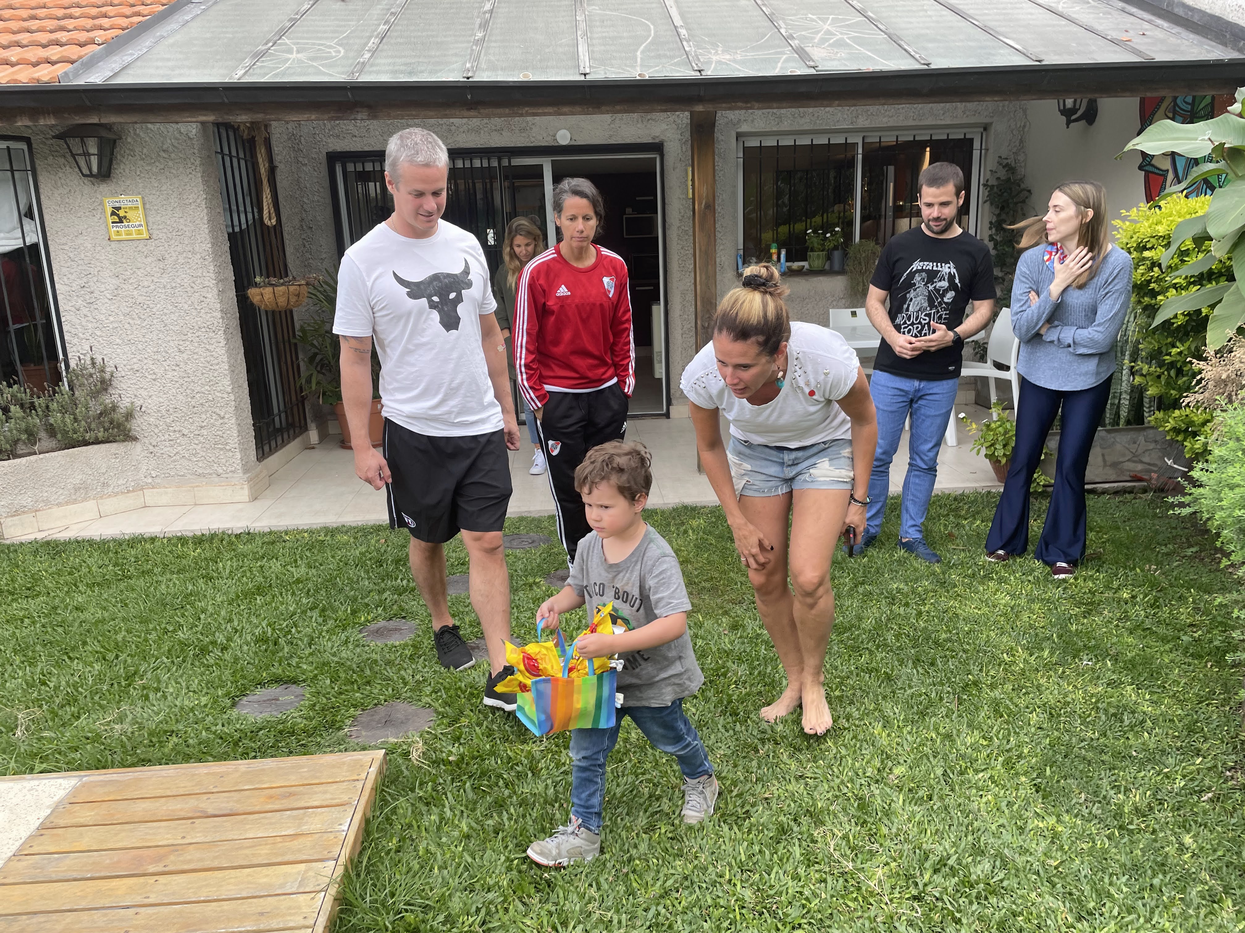 Back home in Florida I start the fire for the asado – we are cooking pollo a la parrilla with a greek style marinade for the family. Agus is doing her world renowned greek style potatoes and some salads. I realise that we were running low on carbon so I dash out around the corner to get some from the local veggie store. I’m back before the guys show up with the food we need to prepare and I’ve got the fire going. Santi and Caro arrive and the next thing I know I’m being confronted my a mini Spiderman who is jumping around and shooting pretend spiderwebs at me! Turns out that Alfie saw a kid the other day in the park wearing a Spiderman